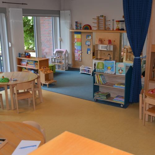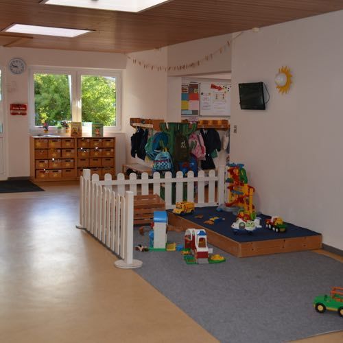 Zusätzlich zu den 3 Gruppenräumen, dürfen wir uns über einen großzügigen Turnraum, Kreativraum und kleinen Funktionsraum (mit wechselnden Angeboten), sowie dem Küchenvorraum freuen. Im 1.OG gibt es noch einen Förderraum der speziell für die Förderung der Integrationskinder ausgestattet wurde und neben der Heilerziehungspfleger/in auch von Ergotherapeuten (Externes Angebot) und Kleingruppen genutzt wird.